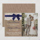 Rustic Navy Blue Ribbon Wedding Photo Marriage Announcement