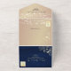 This romantic seal & send wedding invitation features a navy blue wood texture with glowing string lights and white floral accents—perfect for rustic barn weddings, cozy winter ceremonies, or moody evening receptions. No envelope needed—fold, seal, and mail with ease. Personalize for your wedding day.