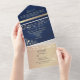 Rustic Navy Blue String Lights Wedding All In One Invitation