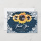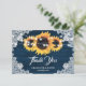 Rustic Navy Blue Sunflower Wedding Thank You Card