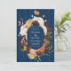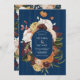 Rustic Navy Blue Wood Autumn Floral Wreath Wedding Invitation