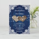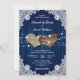 Rustic Navy Blue Wood Burlap Lace Wedding Invitation