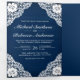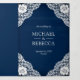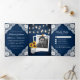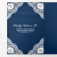 Rustic Navy Blue Wood Lace String Lights Wedding Tri-Fold Invitation