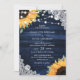 Rustic Navy Blue Wood Lace Sunflower Wedding Invitation