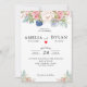 Rustic Navy Blush Pink Floral Modern Wedding Invitation