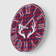 Rustic red and navy plaid clock with white numerals and white deer antlers silhouette.