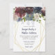 Rustic watercolor flower drop in navy, burgundy, and rose with gold outlines and greenery over a gold geometric design. The fonts are a mixture of handwritten calligraphy and modern in navy blue and dark grey. The back of the card is navy blue. The text boxes are easy to personalize - but if you need help or would like this design on something else, please contact me through my store.