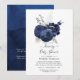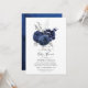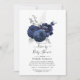 Navy blue and silver floral baby or bridal drive by shower invitation with elegant typography customizable to your event specifics.