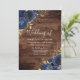 Rustic Navy Indigo Blue Roses & Gold Wedding Invitation