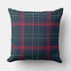 Seasonal Christmas throw pillow design features a Scottish tartan plaid pattern in a red, hunter green, and navy blue colour scheme.