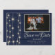 Capture the essence of timeless romance with our exquisite rustic design that seamlessly marries the elegance of a navy wood effect background with the captivating charm of pretty twinkling string lights. Customize with your own photo and text.