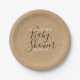 Elegant modern script gender neutral baby shower paper plate featuring elegant black and white text on a rustic kraft background. Designed by Thisisnotme©