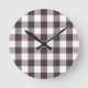 Rustic Neutral Brown White Gingham Buffalo Plaid Round Clock