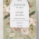 AVAILABLE WITH A QR CODE OR WITH OR WITHOUT DINNER SELECTION OPTIONS. Immerse yourself in the tranquillity of nature's embrace with our rustic wedding invitation, a harmonious fusion of timeless elegance and rustic charm. Set against a soothing sage green backdrop, this invitation exudes a sense of serene beauty, inviting you to embark on a journey of love surrounded by the splendour of the outdoors. Adorned with a floral wreath of tan, cream, beige watercolor florals and sage green foliage under a pristine white arch, with classic font text, this invitation is a masterpiece of understated sophistication. Each petal whispers tales of romance, while the gentle hues evoke a sense of warmth and intimacy that's perfect for celebrating your special day. Captivate your guests from the moment they receive your invitation and set the stage for a wedding that's as enchanting as it is unforgettable. Created by Simply Farmhouse Press.