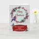 Merry Christmas for niece and her husband card with rustic country wood pattern and watercolor christmas wreath with winter foliage and bird.