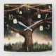 Rustic Night Tree with Lights & Mason Jars Square Wall Clock