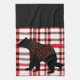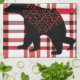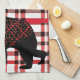 Rustic Northwoods Black Bear Silhouette On Plaid Kitchen Towel