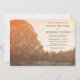 A rustic fall wedding invitation design featuring an orange and brown oak tree in a field.