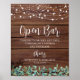 Rustic Open Bar Greenery String Lights Wedding Poster