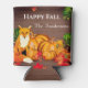 Personalized with the family name. Rustic Happy Fall Rustic Orange Fox Pumpkin Fall Autumn Leaves Can Cooler