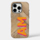 Rustic Orange and Hot Pink Shadow Monogrammed Personalized Vertical Big Initial Light Coloured Wood Texture Pattern iPhone 16 Pro Case - This trendy light wooden texture patterned phone case has large orange and hot pink vertical shadow monogram on the side which you can customize to make this phone one of a kind and truly yours.