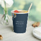 Are you looking for a unique and rustic wedding paper cup? Look at our navy and rust wedding paper cup! Beautiful for fall weddings or any other autumn-themed event. Our burnt orange cup is perfect for a rustic feel, with elegance. Beautiful Rustic Orange Terracotta Navy Blue Rust Wedding Paper Cups.