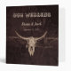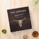 Rustic bull cow skull western country cowboy wedding photo album binder for newlyweds. Customized brown texture farmhouse style design. Beautiful matching border on spine. Old wild west vintage antique inspired. Cool, trendy, modern farm animal design. Customize your script. Image copyright Marg Seregelyi Photography.