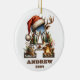 Celebrate the holidays with a personalized touch of nature! This rustic ornament showcases the letter "A" adorned with a cozy winter scene, snow-capped mountains, a glowing campfire, and festive greenery. Topped with a playful Santa hat, this design is perfect for nature lovers and those who cherish the great outdoors. Customize it with a name and year to create a unique keepsake that brings the spirit of adventure to your holiday decor. It is great for campers, outdoor enthusiasts, or anyone who loves rustic holiday charm.