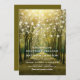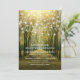 Backyard wedding invitations featuring a rustic romantic greenery woodland path, string lights, and a modern wedding template that is easy to personalize.