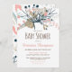 Soft pastel colours in coral, mint, teal, and brown adorn the top in a botanical style with berries and pine cones. This trendy typography is customizable or keep this fun style as it is for your convenience. Perfect gender neutral invitation for a either baby boy or baby girl shower.