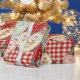 Warm rustic patchwork pattern wrapping paper featuring stitched heart motifs, plaid checks, and country-style fabric blocks in red, blue, green, and beige tones. A cozy farmhouse-inspired design ideal for country decor lovers, quilting fans, and rustic home enthusiasts. Perfect as a heartfelt gift for couples, moms, or cottage-style fans