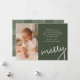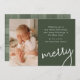 Modern country rustic one photo Christmas card features stylish white merry script and festive shades of green with a patchwork plaid pattern on the back of the card. Personalize the classic greeting card with your custom family photo!