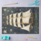 Painting featuring a Vintage Tall Ship At Night, in the style of primitivist art, illusory portrait, seascape.