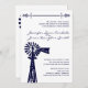 Commandez 100 Invitations - Économisez 40% Une simple invitation de mariage campagnard rustique avec un moulin à vent de ferme au bas de l'invitation en marine et blanc. L'arrière de l'invitation a également le design du moulin à vent. Ces invitations sont parfaites pour un mariage de style campagnard, un mariage agricole, un mariage rural ou tout mariage qui se tient dans un lieu mariage de moulin à vent.