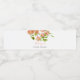 Rustic peach theme water bottle label featuring watercolor illustration of peaches on a tree branch.