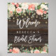 A lovely rustic bridal shower welcome sign to match this range of wedding stationery with a rustic wood background and peachy flowers and greenery. Easy to edit the text fields showing with your name and date etc. Visit my shop now to see the full range available including stickers, invitations, etc.