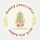 Rustic Personalize Greenery Christmas Classic Round Sticker