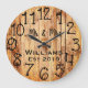Beautiful, unique, one-of-a-kind personalized design features a faux-rustic brown wood with black personalization his and her names in a script font overlay design and the last name and year established in a bold script with a printed wood effect background. Personalize this clock by adding your personal information. Makes a great wedding, anniversary, or housewarming gift. Click "personalize this template" to change the names, fonts, and colours to create a unique one of a kind design. What an elegant, rustic accessory for your living room, bedroom, or family room. If you need any help with customization please email me at ybnormalone @gmail.com. Thanks for stopping by www.zazzle.com/Personal_Creations. ©Karen Hall for Personal_Creations at Zazzle.