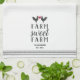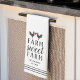 Celebrate life on the farm with this cute personalized kitchen towel featuring the phrase "farm sweet farm" in dark grey lettering accented with a pair of chickens and a red heart. Customize with your family name and/or year established beneath.