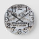 Beautiful, unique, one-of-a-kind personalized design features a faux-rustic grey wood with black personalization his and her names in a script font overlay design and the last name and year established in a bold script with a printed wood effect background. Personalize this clock by adding your personal information. Makes a great wedding, anniversary, or housewarming gift. Click "personalize this template" to change the names, fonts, and colours to create a unique one of a kind design. What an elegant, rustic accessory for your living room, bedroom, or family room. If you need any help with customization please email me at ybnormalone @gmail.com. Thanks for stopping by www.zazzle.com/Personal_Creations. ©Karen Hall for Personal_Creations at Zazzle.