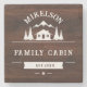 Each coaster features a rustic wood design personalized with your family name, adding a custom touch that makes it uniquely yours. Whether you're enjoying a hot cup of coffee by the fireplace or sipping a cold beverage on the porch, this coaster is a functional and decorative accent that enhances the cozy ambiance of your cabin.