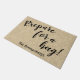Welcome your guests with this fun script typography rustic door mat design personalized with a name and "Prepare for a hug" message. Fill in the text field with a family name, remove the name or click customize to select a font style, size, and colour you prefer.