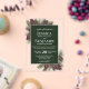 Invite your loved ones to share in your joy on your wedding day with these gorgeous acrylic invitations. The stylish boho chic design features your names prominently displayed in bold letters while the introduction and other notes feature fancy script calligraphy with swashes on the ends of the letters. The text is displayed on a marbled forest green colored background. The outside border of the invite is transparent acrylic with hand painted pinecones and pine branches decorating the corners. Elegant, classy, sophisticated and beautiful, these wedding invitations are perfect for a winter or mountain wedding.