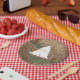 A rustic pine forest themed design with faux burlap texture in the background accompanied with vintage pine cones and branches as well as a simple white silhouette of a Christmas tree and your custom text . Ideal for Christmas gifts and decor. Customize the Christmas party plate with your text and make it your own.