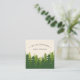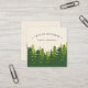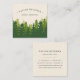 Unique square business cards for adventure guides, tour guides or any outdoor type occupation feature a forest of pine tree silhouettes in rich shades of green, with your name and business name, title or occupation above. Add your full contact details to the back in midnight blue lettering.