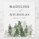 Elegant, rustic wedding wine label featuring a forest of hunter green & sage green watercolor pine trees. Personalize the pine tree wine labels by adding your names & wedding date. Designed to coordinate with our Rustic Pine Forest wedding collection.