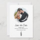 Rustic pine tree casual wedding save the date announcement, with a simple typography design. With customizable lettering, you add your own information. You also add your own photo to add personalization. The back has a sage green background and gives you the option to add your wedding website and a QR code for your guests to scan. Great for planning your special day with a boho style.