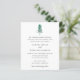 Modern wedding invitation featuring a simple design with a hand painted watercolor pine tree and your event details in serif and script fonts.