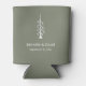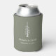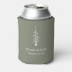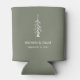 Casual sage green wedding can cooler, with a pine tree and customizable typography design. A rustic addition to your wedding reception.