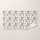 Beautiful rustic forest trees with a bear, buck and fox pattern bath towel set on a neutral white background. Visit our shop to view our matching bath decor items.